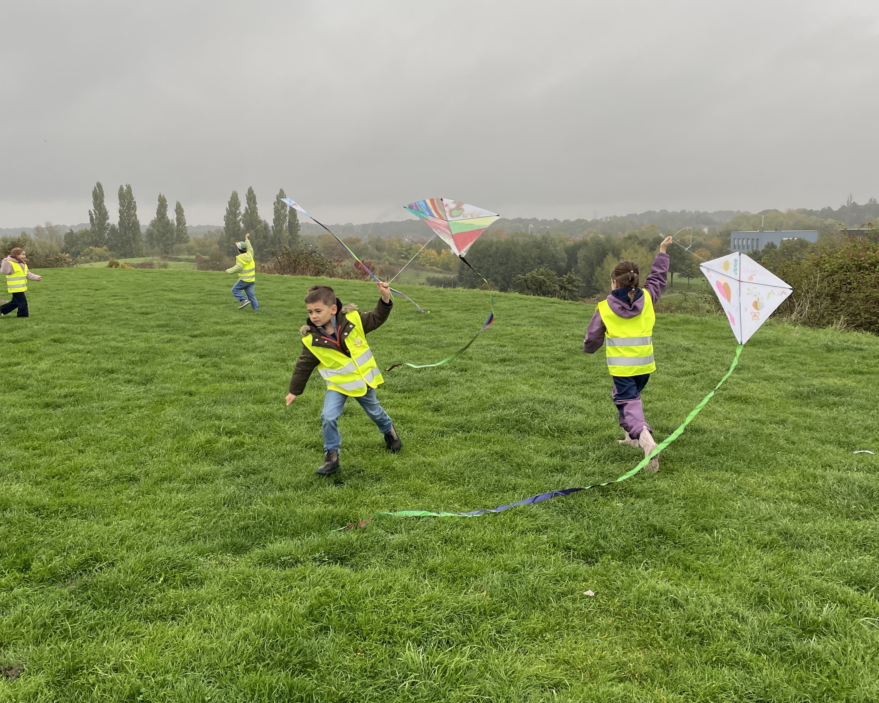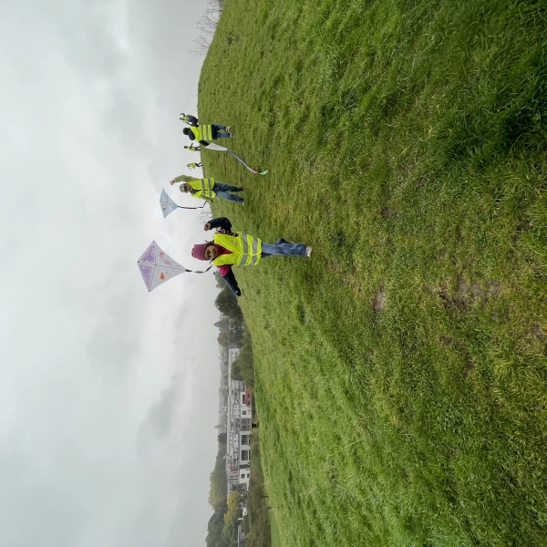 Vor den Herbstferien hat sich die 1b mit ihrer Klassenlehrerin Frau Stork und einigen helfenden Eltern auf den Weg gemacht, den Wind im Erinpark zu nutzen, um gemeinsam Drachen steigen zu lassen. Das Wetter war genau passend und die Kinder waren froh, dieses Erlebnis schon im ersten Schuljahr mitmachen zu dürfen.